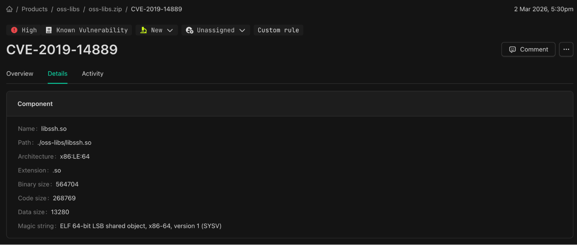 To see this in action, let’s examine CVE-2019-14889, a command injection vulnerability in libssh, which allows an attacker to inject and execute arbitrary commands on a remote server under certain conditions.