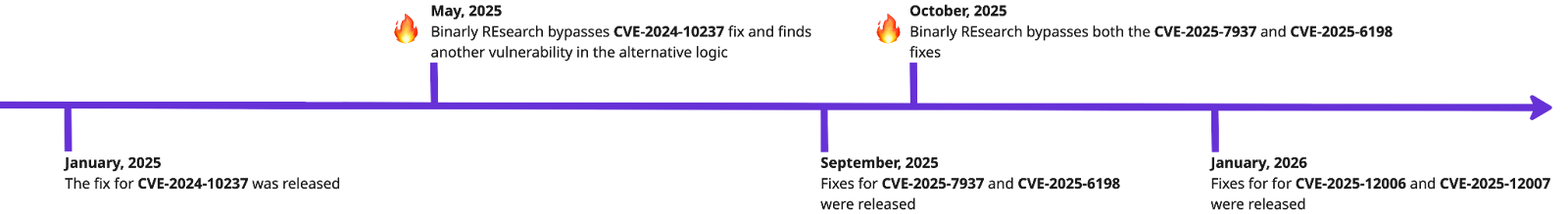 This story illustrates how complicated the vulnerability patching process can be. In this case, to fix the single issue, the vendor required more than a year and three iterations of the full release cycle, which consisted of triaging the reported issues, updating the code, and providing the patches for all the affected products. This highlights how crucial mature security processes are: proper planning and rigorous testing help prevent small fixes from turning into prolonged, multi-release efforts.